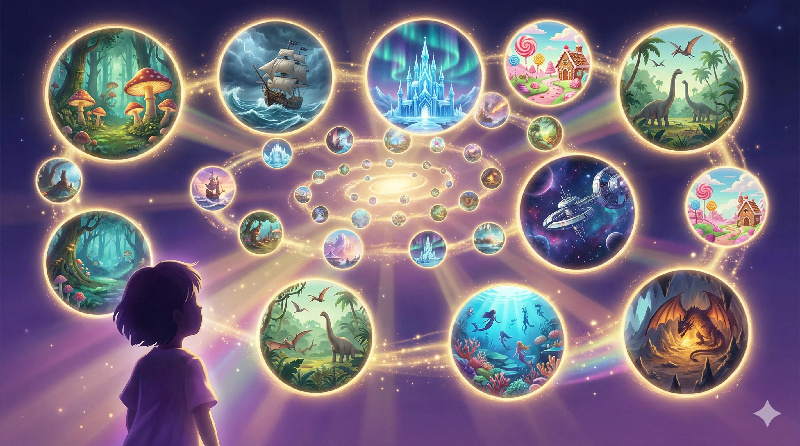 Transformez le temps d'écran en temps de lecture intelligent. Des contes illustrés sur-mesure, avec narration audio et aides visuelles pour apprendre à lire en s'émerveillant.